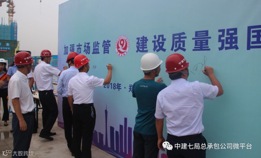 8月31日,局2018年度“质量月”活动启动仪式在公司港区二标项目——全局首个装配式CL保温一体化项目举行。局副总经理盛祥荣,局副总工程师兼七局科技部总经理黄延铮,局总部相关部门领导,公司副总经理田振涛,交通公司、安装公司、建装公司、中建科技、公司港区二标项目等领导、管理人员和劳务工人代表百余人参加。郑州市航空港区质量监督站科长李洪涛、郑州市航空港区航程置业有限公司代表康勇等受邀出席启动仪式。