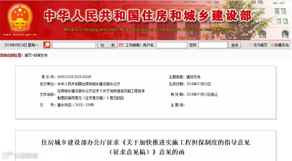 2018年7月,住建部官网发布《关于加快推进实施工程担保制度的指导意见(征求意见稿)》,对投标保证金、履约保证金、工程质量保证金、农民工工资保证金都做出了新的规定。其中明确提出要全面推行工程保函替代保证金、最低价中标的工程应当推行高保额履约保函制度。