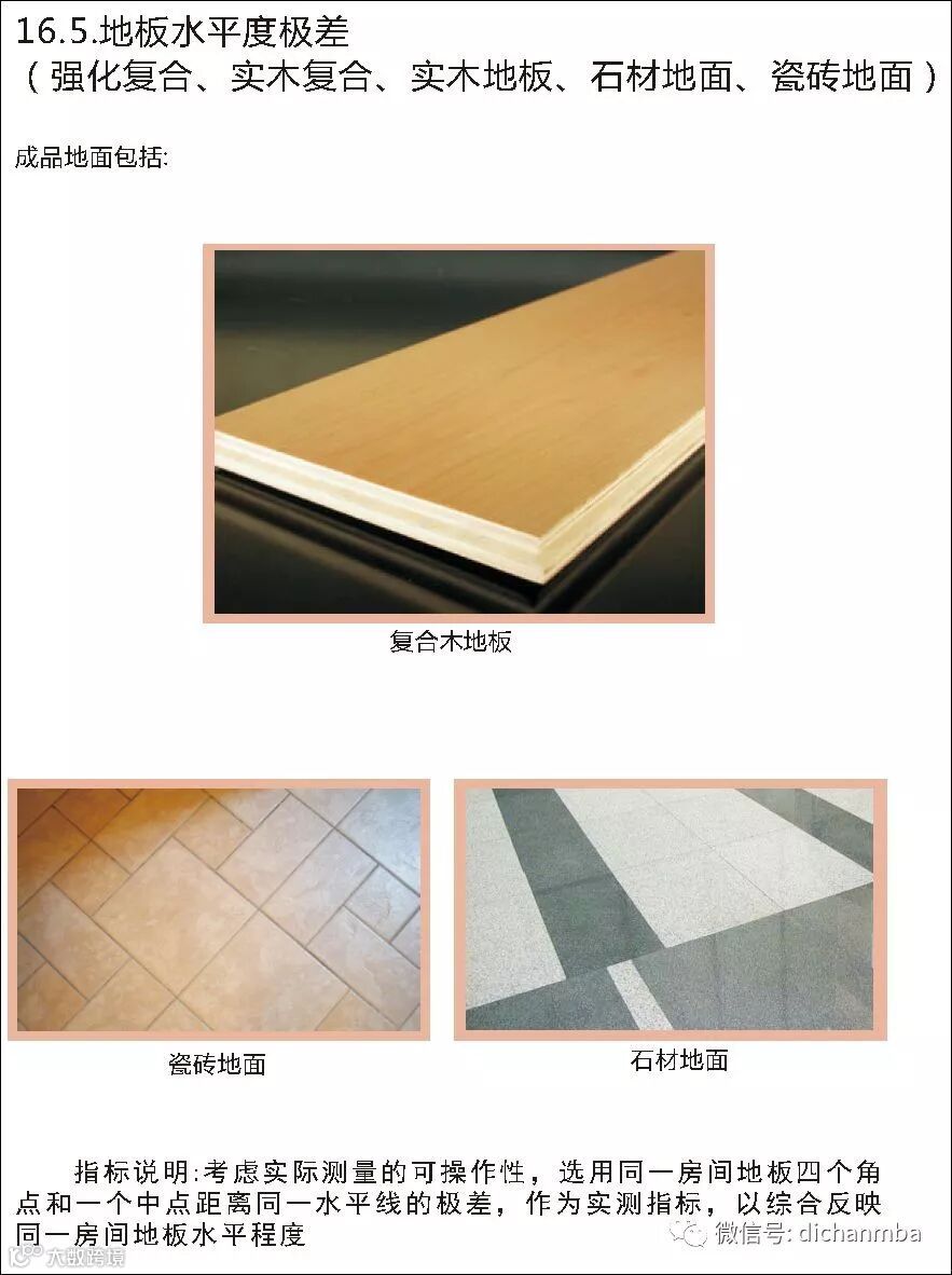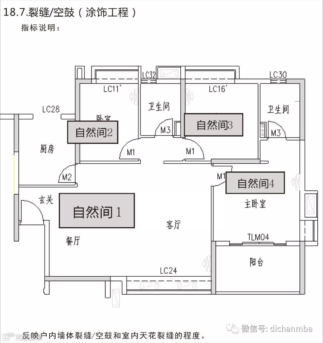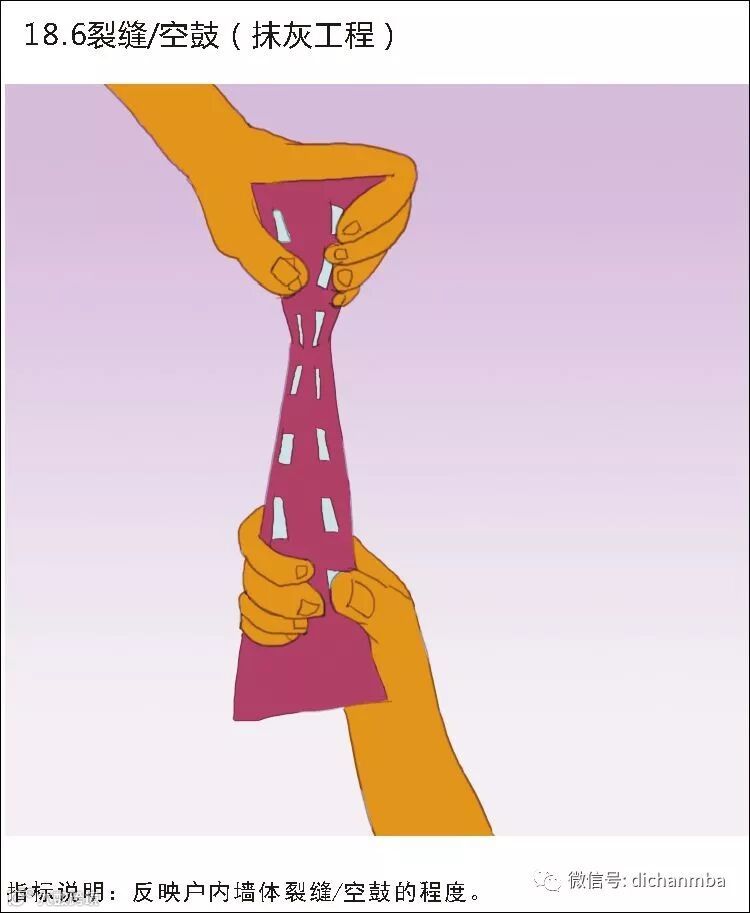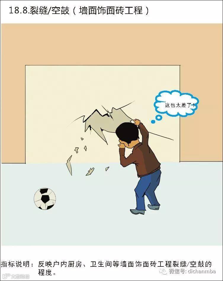 指标说明:反映户厨房、卫生间、走道等地面饰面砖工程裂缝/空 鼓的程度。