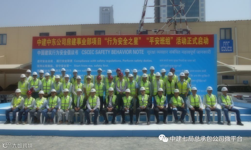 4月26日,中建七局总承包公司联合中建中东公司举办了“行为安全之星”启动仪式。中建中东公司房建事业部总经理田三川、派拉蒙项目董事杨帅,项目经理高玉春及中建中东公司所属项目的项目经理、生产经理、安全负责人等出席,各项目结构队长、装饰队长、水电队长等劳务班组负责人参加。