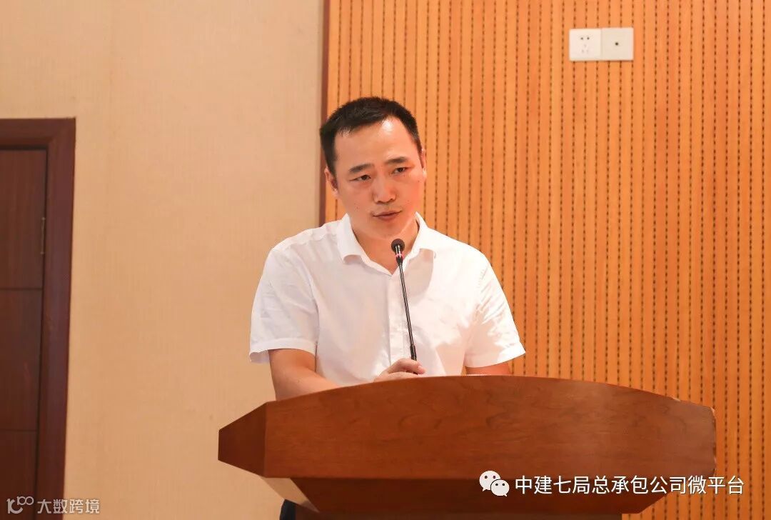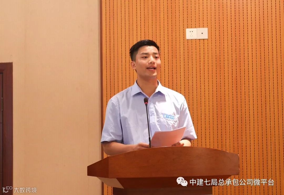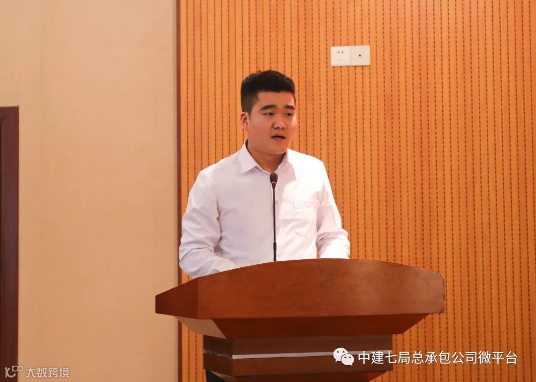 新员工王鹏辉发表了题为《何其幸遇见你,总承包》的感言,分享了自己在培训中的收获与成长,回忆了十四天培训中与同窗接触的点滴。他表示,只有更好的融入团队,承担责任,敢于担当,才能实现个人与团队的双赢,他呼吁大家认真践行“为股东增值,让客户满意,与员工共享,同社会和谐”的共赢理念,与中建七局共同成长。