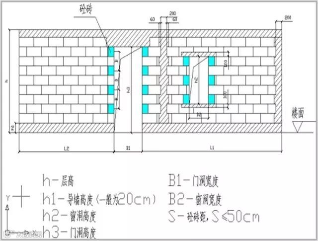 1、砌筑时一定要设置皮数杆并带线,保证“上跟线,下跟棱,左右相邻要对平”。