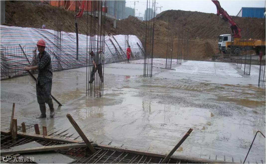 基础底板施工与传统施工方法一致,只是对预留的墙体竖向插筋的尺寸及位置要求较严格。