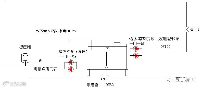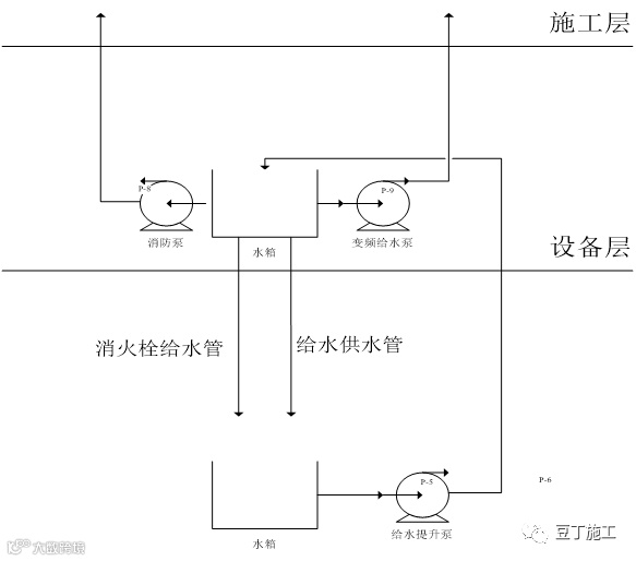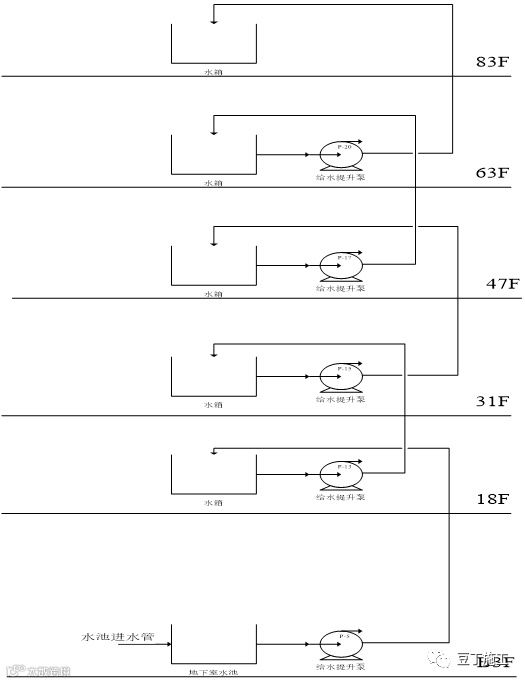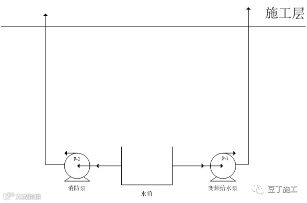 在塔楼上部水箱层尚未施工完毕时,塔楼各层均采用水泵直接供水的方式进行。