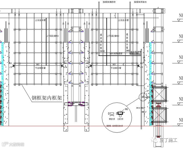 (4)保持和土建施工部的良好沟通,确保在模架提升时相关的管道拆装已经完毕。