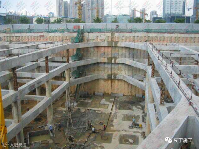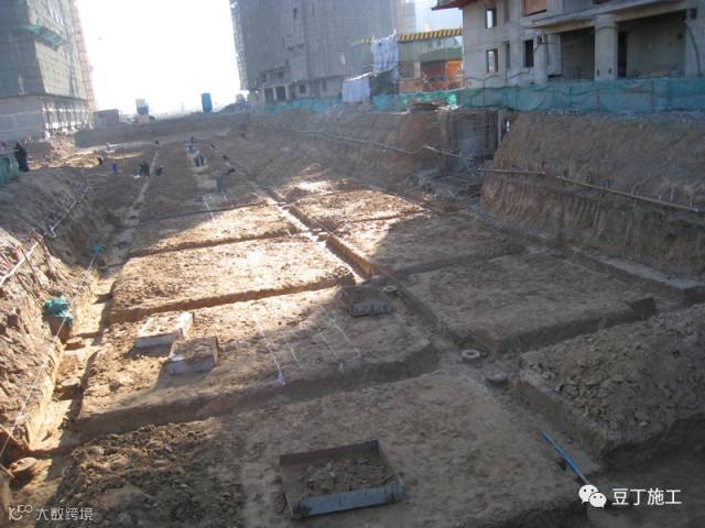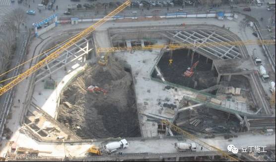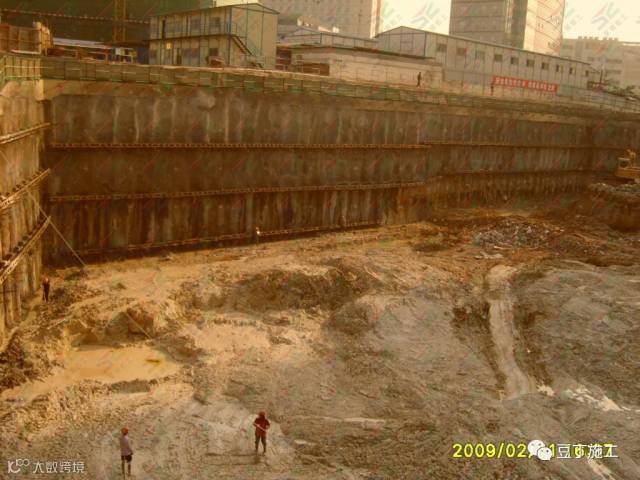 上海环球、广州合景项目,受场地和工期限制,主塔楼范围以外,土方除采用了桩墙支护技术外,地下室采用了逆做法施工工艺,既地下室结构自上而下施工,土方工程穿插进行。
