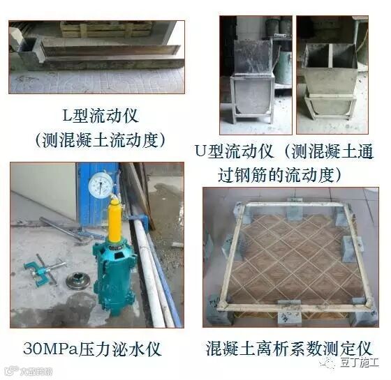 施工工作性能:流动性(过钢筋)、保塑性、初终凝时间、压力泌水、初始温度