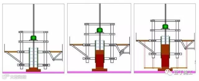 模扳、操作架挂设在钢平台下,增强了结构变化的适应性。该工艺在澳门电视塔和上海环球项目已经成功应用。