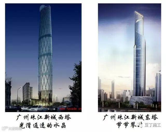 西塔、广州电视塔、环球均为高层钢结构外框加混凝土内筒的结构形式,中央电视台新台址工程则为全钢结构形式。