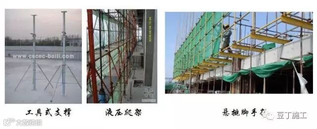 在外防护架方面,主要有落地式脚手架、分层悬挑脚手架、爬架、和工具式支模架等。