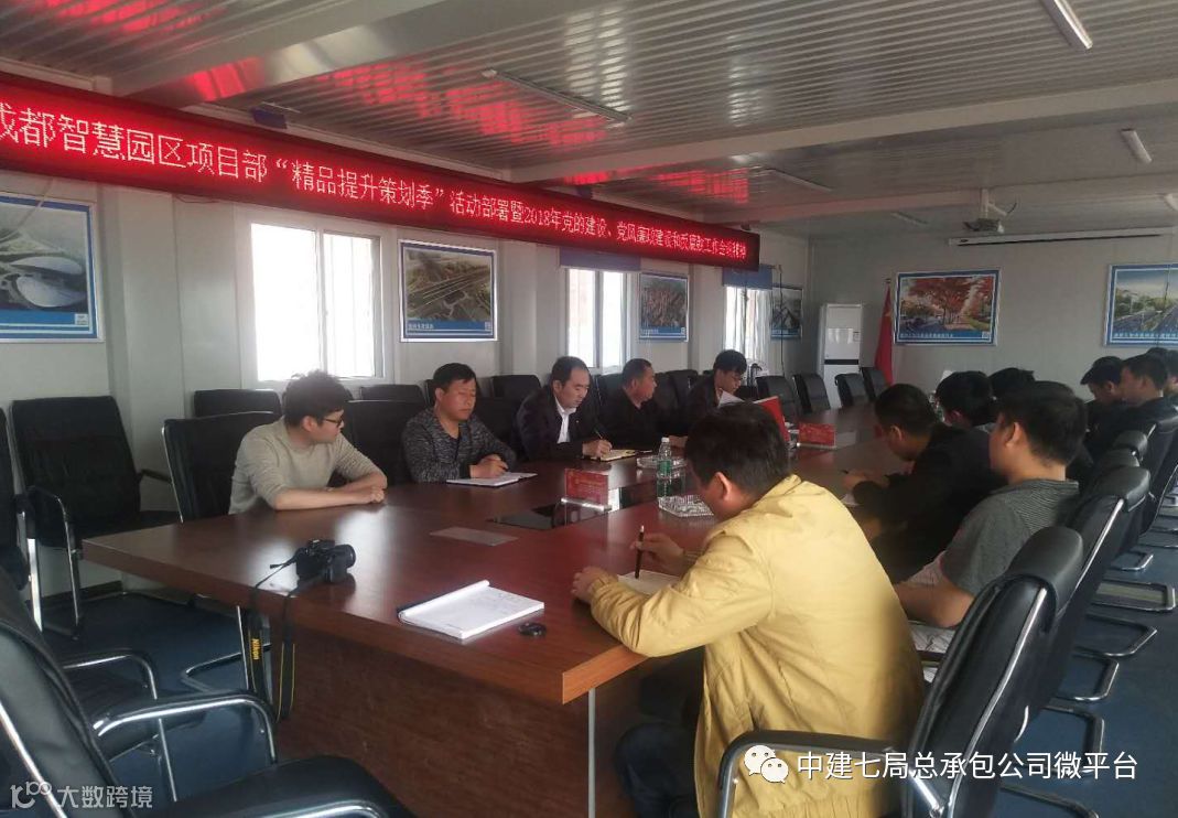 成都智慧园区基础设施项目部召开了“精品提升策划季”活动部署会,结合项目部施工生产,对施工进度、质量、材料、收款、安全生产、党群活动等六个方面了工作进行策划,制定了专项工作方案。