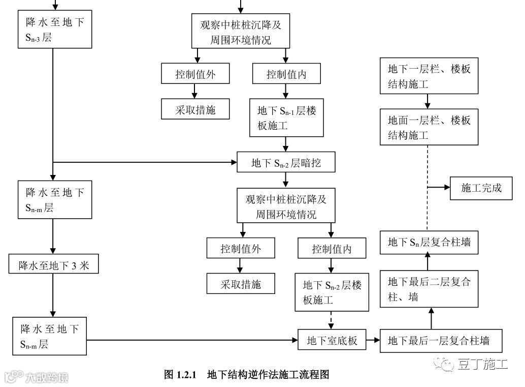 地下结构逆作法施工流程图