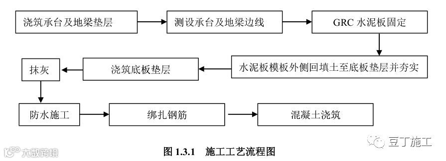 传统的基础地梁、独立承台、集水坑等侧模不易拆除部位,一般单独挖土,采用砌筑砖胎模作为模板。但是砖胎模砌筑工程量较大,投入人力较多,成本较高且不利于保证工期。本技术提出采用 GRC 水泥板代替砖胎模施工,可以有效地起到节约成本、节约工期、降低劳动力投入等效益。GRC 属于水泥基复合材料,如果将其作为永久性模板,与混凝土之间的粘结作用主要通过粘结力、机械咬合力以及混凝土与玻璃纤维增强水泥板表面的凹凸不平之间的摩阻力来实现的,能够与现浇混凝土形成良好的界面结合,共同承担荷载,GRC 水泥板作为结构的一部分具有很好的复合效果。
