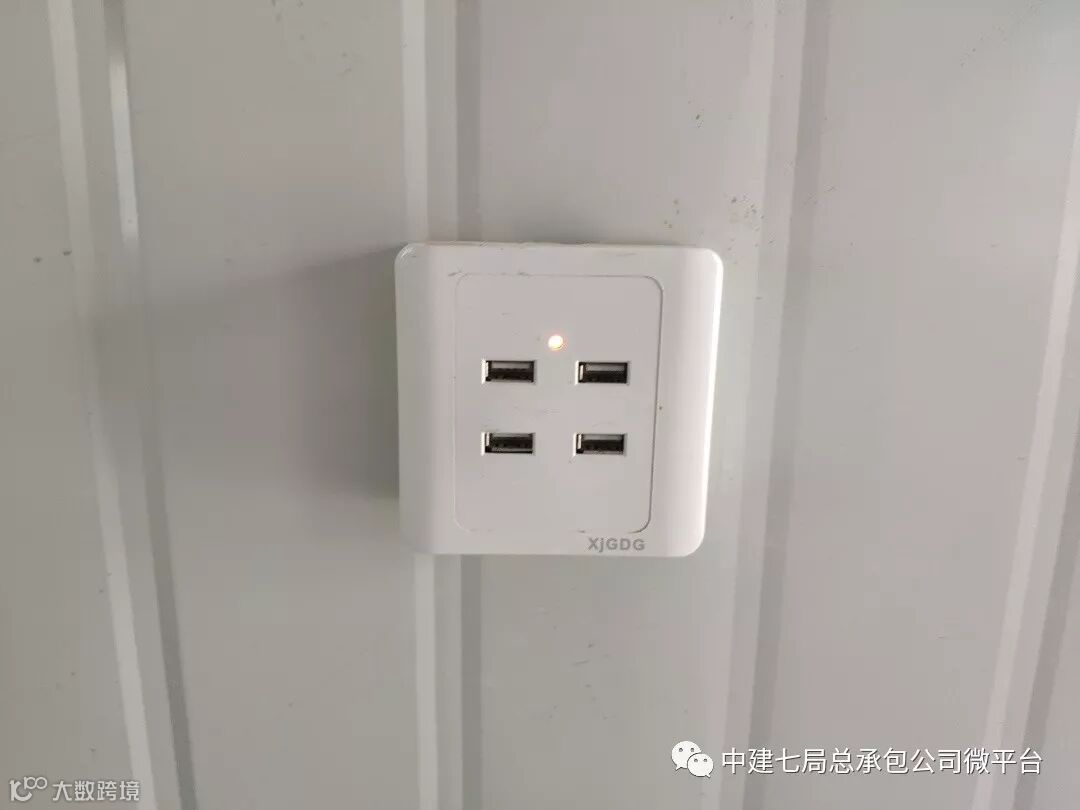1.UBS专用插座,即宿舍采用了USB四孔插座,着重满足工人日常基本用电需求,如电脑、手机电器用电,杜绝了其他用220V电器用电的可能。