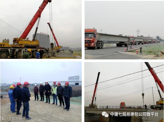 为保证箱梁顺利吊装,吊装开始前,项目部召开动员大会进行了详细的技术交底及安全交底,并组织专业人员对台帽、盖梁长度及高程进行了仔细的检查,划出了架梁的位置线。在做足前期准备工作后,六片箱梁全部进场,通过两台130t汽车吊机,将近三个小时的连续作业,箱梁顺利吊装完毕。