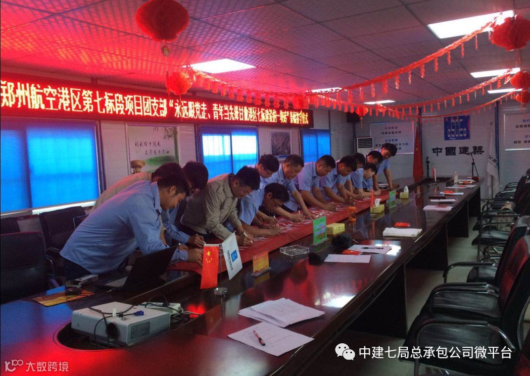 港区七标段团支部通过发团章、学团章,举行“十典九章”做有德守信中建人主题诗朗诵,在“永远跟党走、青年当先锋甘做港区七标建设的一块砖”条幅签字等活动,激发项目青年员工奉献青春,热爱祖国的热情。