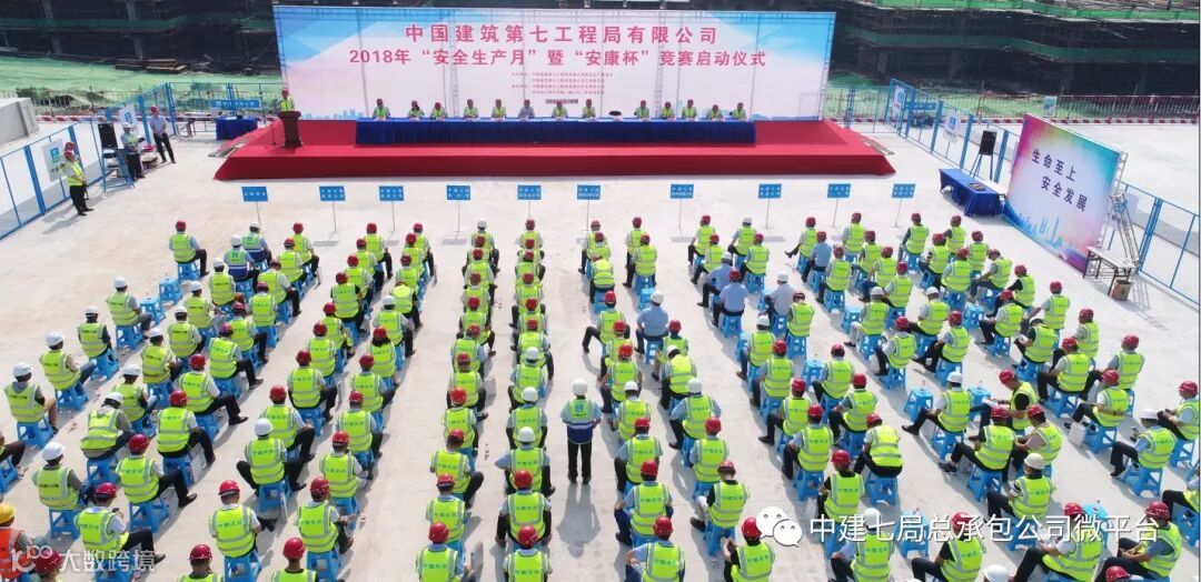 5月31日,中建七局2018年“安全生产月”暨“安康杯”竞赛启动仪式在公司郑州航空港河东第一棚户区二标段项目举行。