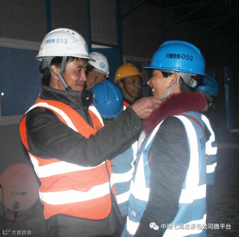 3月7日晚,郑州航空港河东第一棚户区第二标段项目加班施工,在此务工的几对农民工夫妇临去工地前,还不忘在工地夫妻房前彼此检查着装是否符合安全标准。一位女工对丈夫说:“你平平安安的,就是给我的三八节最好礼物!”