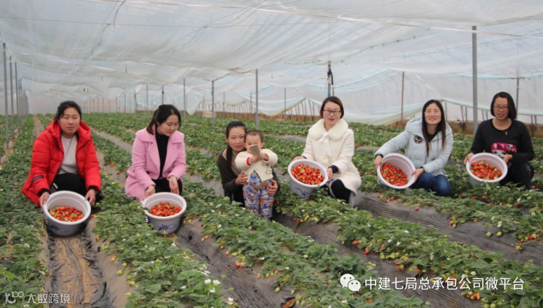 3月6日,中建七局港区七标段和新郑薛店项目女职工相约外出采摘草莓,品尝丰收的喜悦。