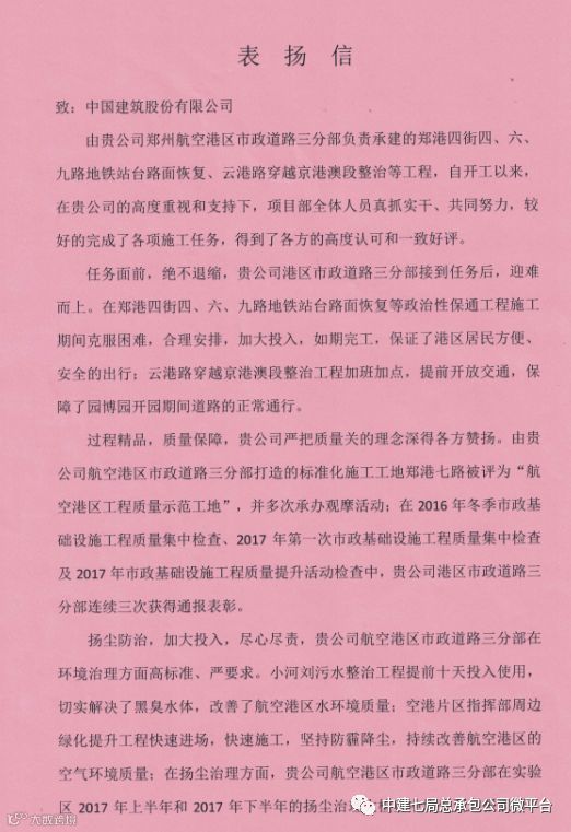 郑州航空港经济综合试验区(郑州新郑综合保税区)规划市政建设环保局鉴于港区市政道路项目的优异表现,对其进行了表彰!