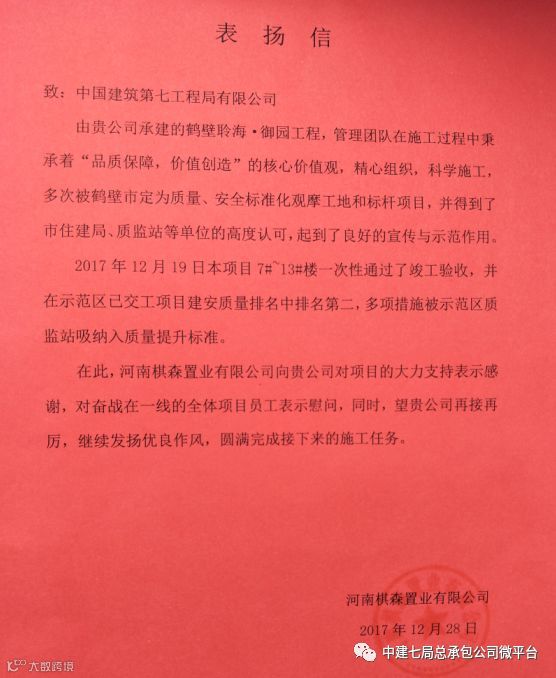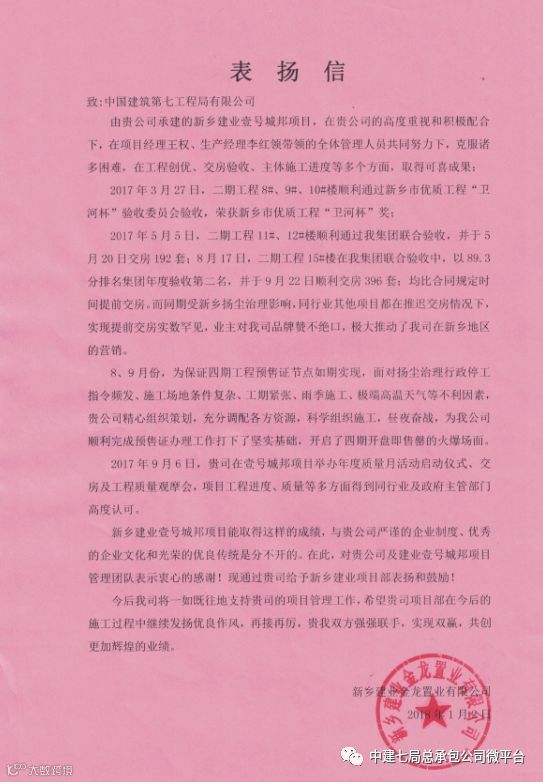 甲方(新乡建业金龙置业有限公司)对此给予了高度赞扬!