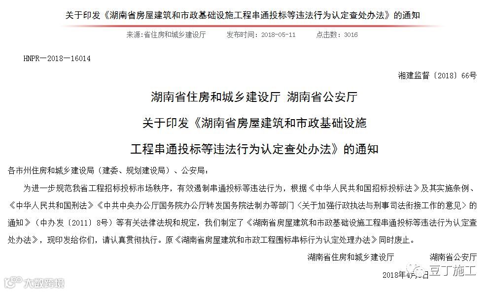 肆丨《湖南省房屋建筑和市政基础设施工程串通投标等违法行为认定查处办法》开始实施