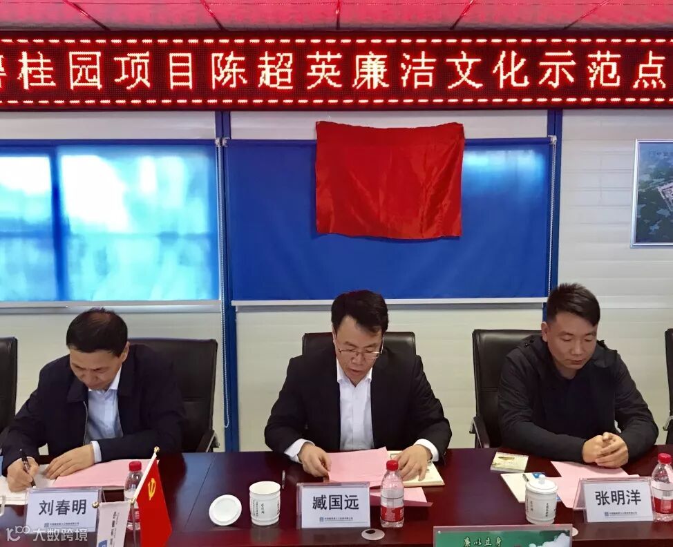 启动仪式上,与会人员一起观看了视频《时代先锋:陈超英》、中建七局党风廉政微电影《算账》;宣读了《项目廉洁文化建设实施方案》,并签署了《意见书》;劳务方、监理方代表及项目班子成员分别作了廉洁承诺;焦作碧桂园测量员窦琳、施工员陈宏博被聘为公司级廉洁监督员并授予聘书;刘春明、臧国远共同为“创建陈超英廉洁文化示范点”揭牌,并向项目部赠送廉政书籍;