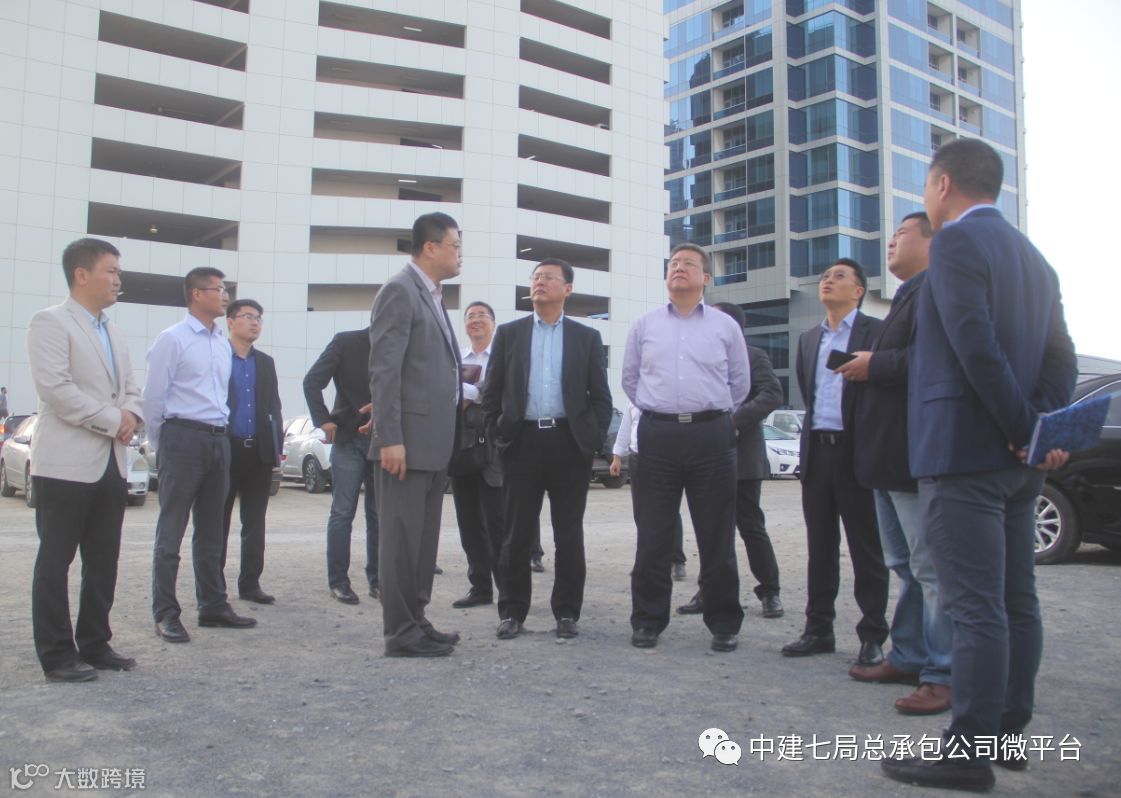 1月6日下午,中建集团党组成员、副总经理、中建股份副总裁郑学选,中国建筑海外部总经理陈文健一行在中建中东公司总经理余涛、副总经理田三川,中建七局中东事业部副主任谢国兴、总承包公司派拉蒙项目经理高玉春及其他人员的陪同下,视察了公司承建的迪拜派拉蒙酒店项目。
