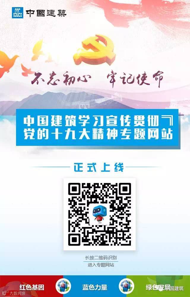 11月1日,中国建筑学习宣传贯彻党的十九大精神专题网站正式上线,在公司官网PC端和移动wap端首页上部同时开辟专栏,可长按海报二维码识别,进入专题网站学习!