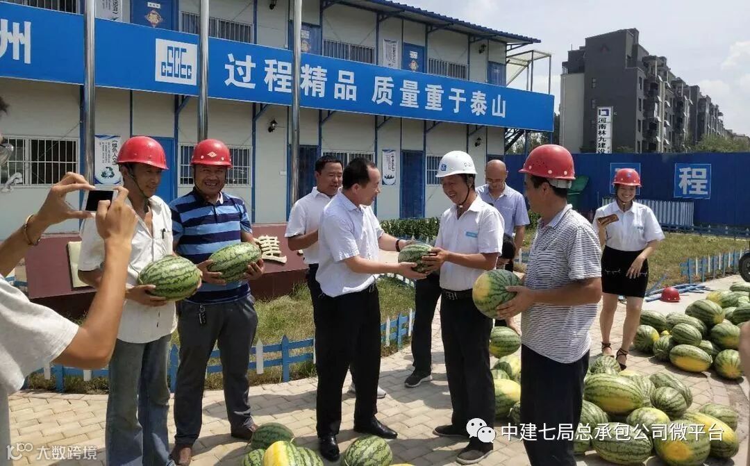 近日,公司新郑薛店项目部召开了夏送清凉专题会,随后项目经理赵怀兴及项目生产经理兼总工甄伟向劳务工人代表发放了2800多斤西瓜及240余盒藿香正气水,近300盒风油精等防暑降温物品。