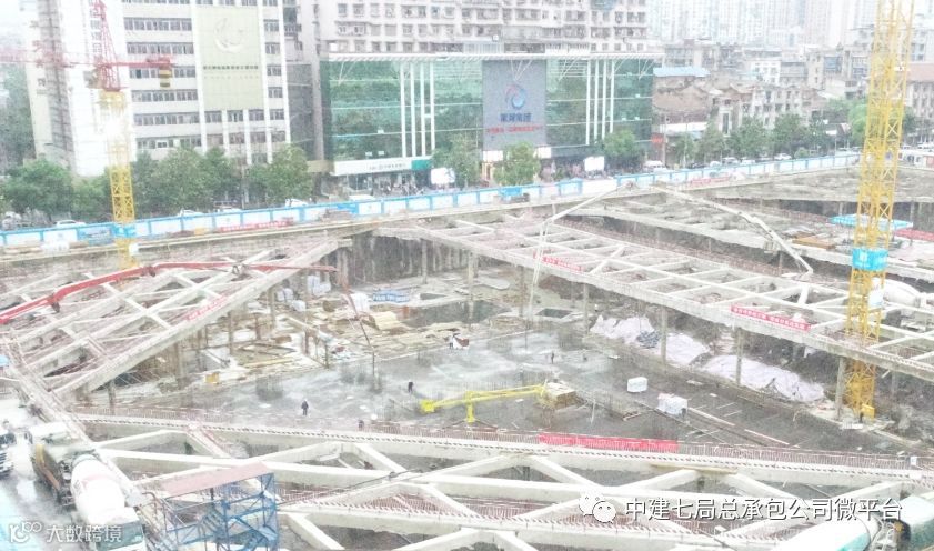 该底板工程混凝土设计标号为C40P8,面积约4000平米,普遍厚度为3.8米,受场地狭小机械周转不便,砼车沿途交通受限等影响,一次性浇筑量高达11000立方米,施工难度大。