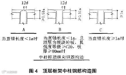 根据《混凝土结构设计规范》GB50010-2002和《混凝土结构施工图平面整体表示方法制图规则和构造详图》03G101-1的要求,顶层混凝土框架柱中柱钢筋的构造应能满足下图所示构造要求: