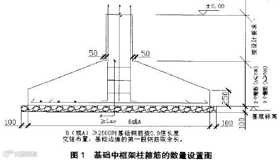 根据05系列江苏省工程建设标准设计图集《建筑结构常用节点图集》苏G01—2003的要求,基础中框架柱箍筋的数量设置按下图进行设置。