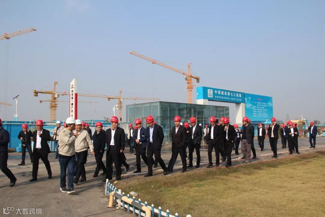 11月8日,华北公司副总经理王喜龙、总工程师曹维存一行百余人到港区二标项目参观交流,项目总工訾建涛、项目4号地块生产经理许鹏飞等陪同。