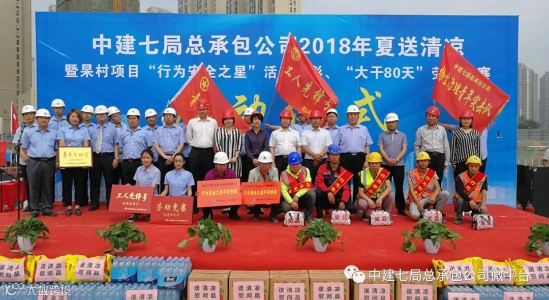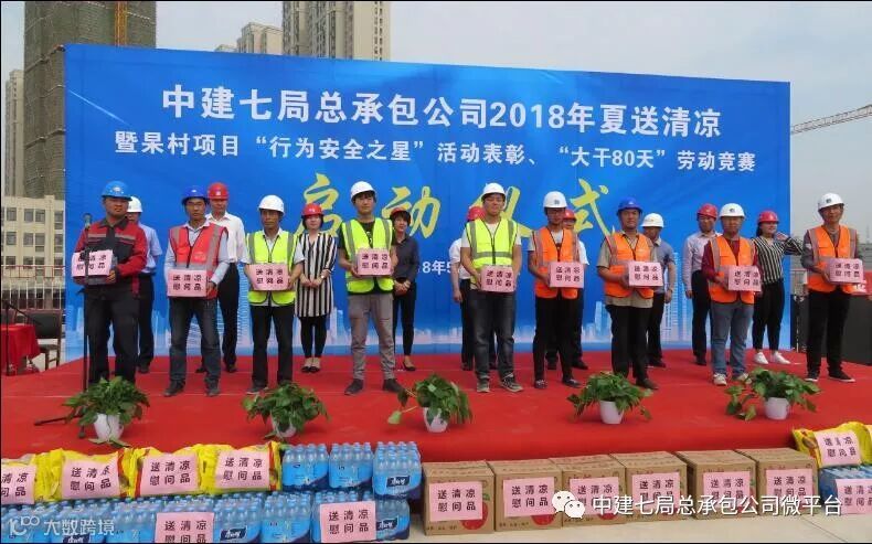 近日,公司2018年夏送清凉暨杲村项目“行为安全之星”活动表彰、“大干80天”劳动竞赛启动仪式在郑州杲村项目施工现场举行。公司业主——河南锦家置业有限公司总经理祝媛媛,河南正博建设监理有限公司项目总监郑顺才,局工会生产部部长李荣桓,公司副总经理田振涛,工会代表、杲村项目经理夏红超,项目管理人员及100余名劳务工人代表参加了此次活动,活动由杲村项目A-2地块生产经理兼工会主席徐松涛主持。