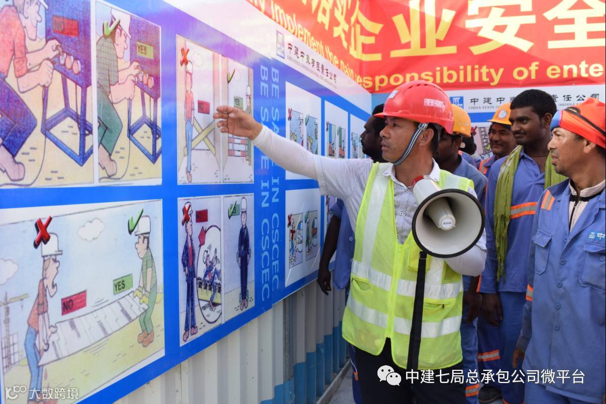 “想做事情只有一个理由,不想做事有千万个理由。”邱国豹坦言,“咱主动申请出国,不尽量多做点事,既对不起领导,也对不起亲友呢。”他深知安全管理重在提高员工的安全意识,丰富大家的安全常识,就从仔细抓好安全教育培训入手,来为优质的施工安全监管奠定基础。针对工地上有中外五六个国别的员工一同施工的情况,邱国豹在对大家进行安全教育培训前,首先对工友们曾在别的工地受过何种安全教育培训作了详细摸底,而后,查漏补缺,重点对“三违章”(违章作业,违章指挥,违反劳动纪律)、红黄蓝绿四个安全警示色手牌的应用,安全带、灭火器的使用、脚手架规范搭设、临边及洞口防护、小型机械机具的正确操控等逐一做好演示。此外,还通过播放国内外高空坠落、坍塌、触电、机械伤害、物体打击、火灾、食物中毒、危险品爆炸等视频案例,安全漫画上墙等办法,让各国员工体会安全生产的重要性。