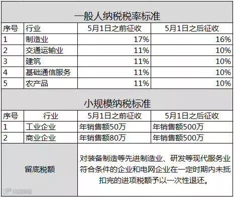 从2018年5月1日起,实施以下深化增值税改革征收标准整理如下: