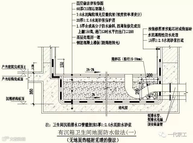 三卫生间防水施工节点大样图(以集团标准图集为例,施工时以施工图为准)