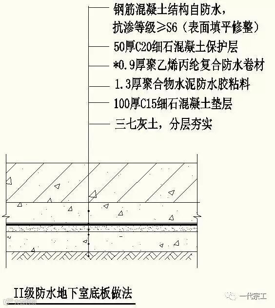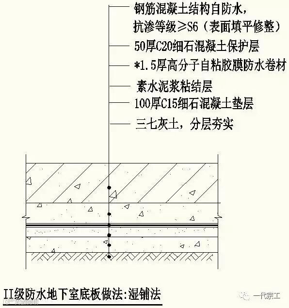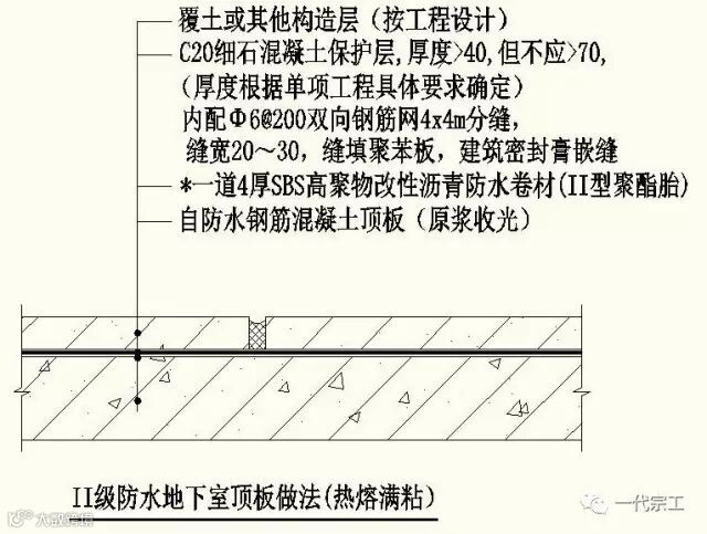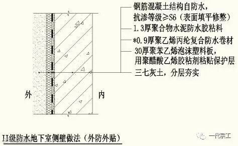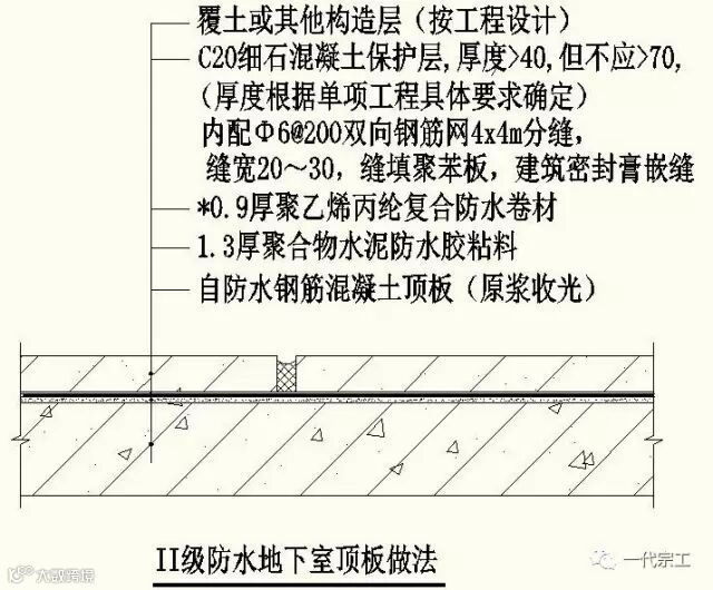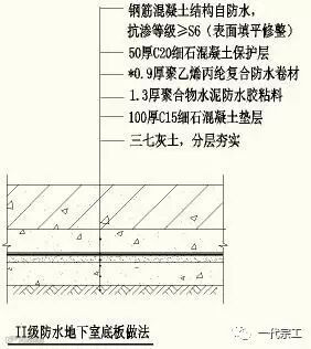 (二)地下室防水做法二(在北方地区温差较大及冬季5度以下施工时使用)