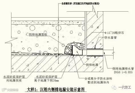 (三)沉箱内侧排地漏安装示意图