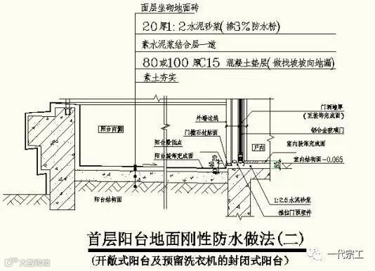 (一)阳台刚性防水做法