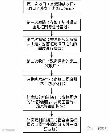 一外窗防水施工工序(以水泥砂浆塞缝为例)