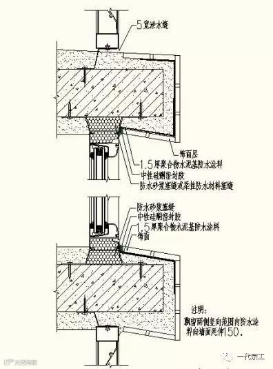 三外窗防水施工节点大样图(以集团标准图集为例,施工时以施工图为准)