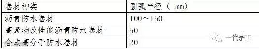 3、 基层突出屋面结构(女儿墙、山墙、天窗壁、变形缝、烟囱等)的交接处和基层的转角处,找平层均应做成圆弧,圆弧半径应符合表的要求。内部排水的水落口周围,找平层应做成略低的凹坑,做附加层。