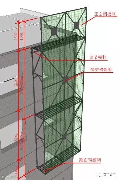 (2)空调板、阳台板处采用轮扣式支撑,兼做外防护。横杆长度采用600mm、900mm、1200mm。