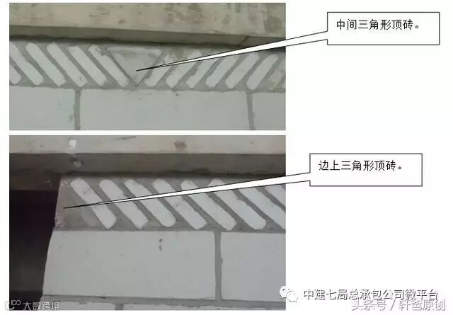 顶砖样板:斜砌。采用C20混凝土预制预制三解形顶砖
