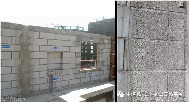 门、窗两侧用190*190*190单孔砼小型空心砌块内填细石砼。