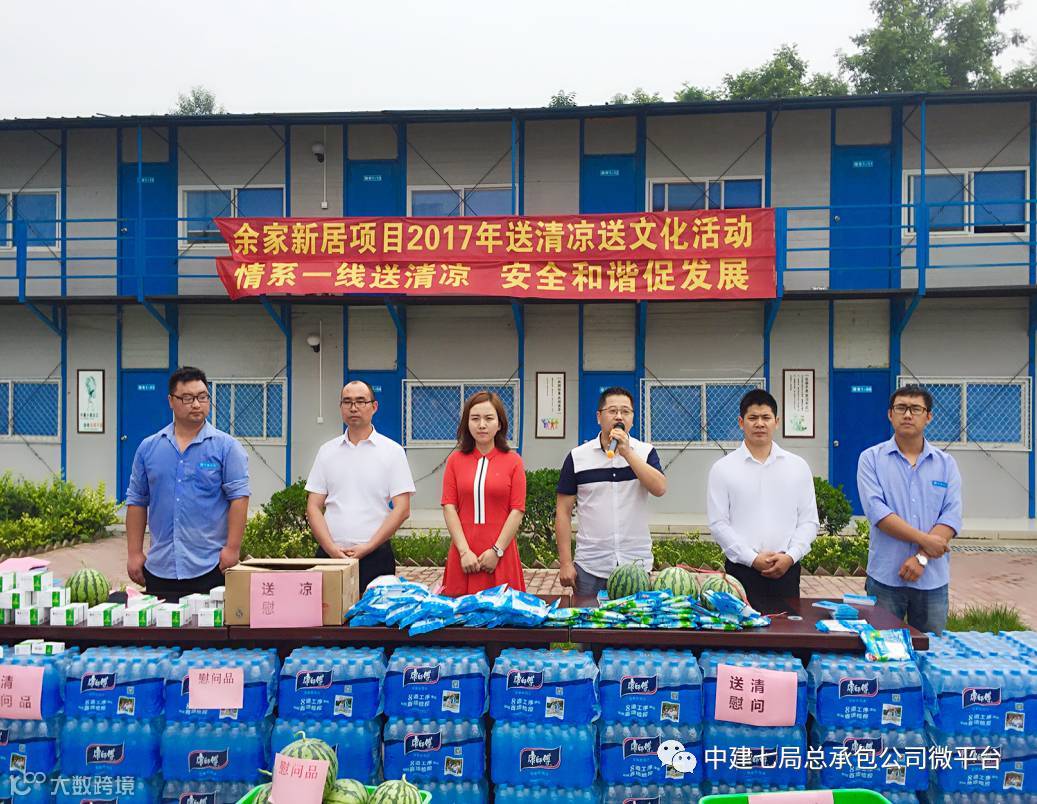 近日,公司工会来到成都余家新居项目开展了送清凉、送文化活动,为项目员工和工友们送去了防暑降温用品、劳保慰问品和学习书籍。公司工会工作部、团委书记李嘉佳,西南分公司经理刘宏军,余家新居项目经理、工会主席李伟峰等参加了活动。
