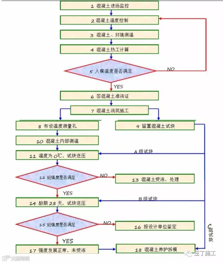 1、混凝土冬期施工流程