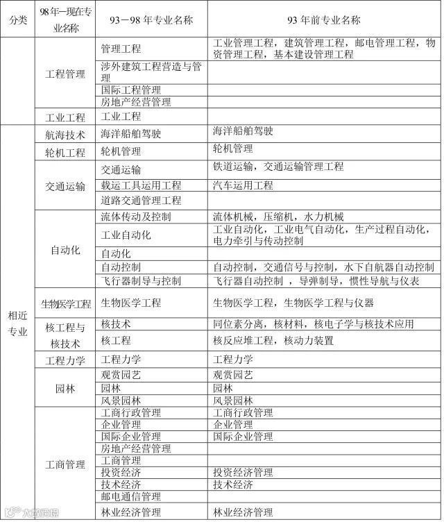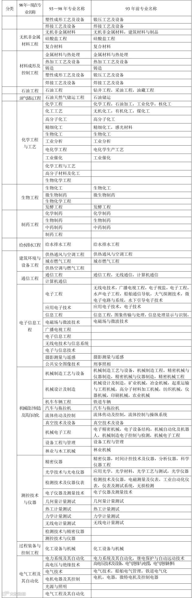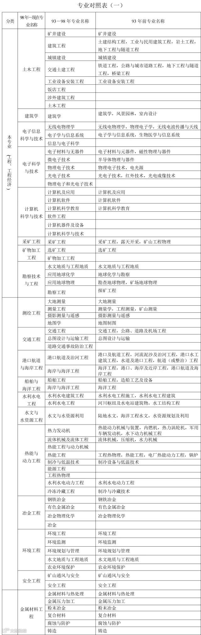 1、本表按教育部现行《普通高等学校本科专业目录新旧专业对照表》编制,共涉及“土建类、测绘类、水利类、交通运输类、能源动力类、地矿类、材料类、电气信息类、机械类、管理科学与工程类、生物工程类、化工与制药类、工程力学类”等18类45个专业,其中本专业36个,相近专业9个。